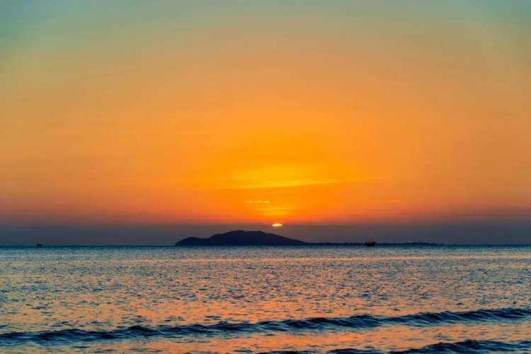 三亚,海边的落日即将沉没海岸线。(图/图虫创意)