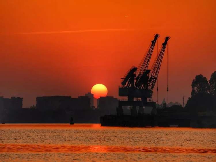 广州大学城北亭村日落,红霞满江。(图/图虫创意)