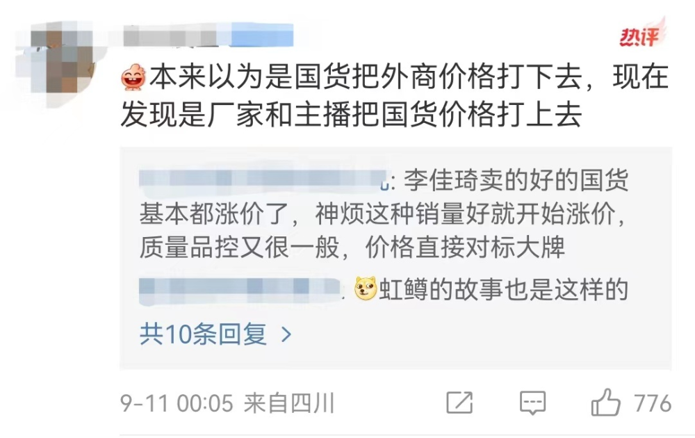 评论区里,被点赞最多的一条留言写道:“你可以解释为什么那么贵,是因为原材料或者做工还是别的原因导致的,但是不能攻击消费者。”